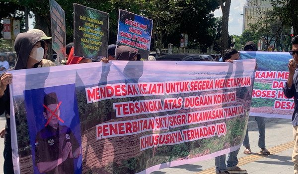 Mereka menuntut ketegasan hukum dalam kasus dugaan korupsi penerbitan Surat Keterangan Tanah (SKT) di kawasan hutan konservasi dan hutan produksi terbatas di Kampar, yang diduga dilakukan anggota DPRD Kampar berinisial IS. Aksi tersebut dilakukannya semasa dia menjabat Kepala Desa (Kades).