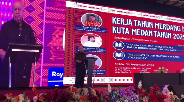 GEGAS.CO || MEDAN - Pesta budaya "Kerja Tahun Merdang Merdem Kuta Medan 2025" berlangsung meriah di Grand Ballroom JW Marriott Hotel, Sabtu (6/9/2025), sekaligus menjadi momentum peluncuran buku "Bangsa Karo dari Masa ke Masa dalam Dokumentasi Lukisan dan Foto" yang disebut sebagai mahakarya dokumentasi visual peradaban Karo .