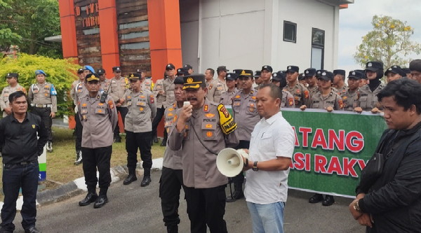 Aksi ini diterima oleh Kasubdit II Dit Intelkam Polda Riau, AKBP Boy Azhar. Di hadapan massa aksi, dia menyampaikan apresiasi atas penyampaian aspirasi yang tertib.