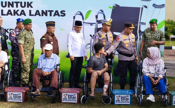 Dalam kesempatan itu, Polda Riau menyerahkan bantuan sosial berupa kursi roda bagi penyandang disabilitas korban kecelakaan, sabuk bonceng anak, alkohol tester, serta perangkat TAA untuk mendukung penyelidikan kecelakaan.