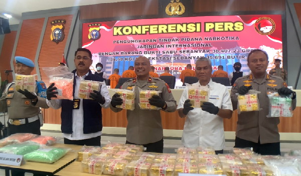 Tim gabungan ini berhasil mengungkap jaringan narkotika internasional yang menyelundupkan 38,40 kilogram (kg) sabu dan 35.691 butir ekstasi berhasil disita dari 5 (lima) orang tersangka.